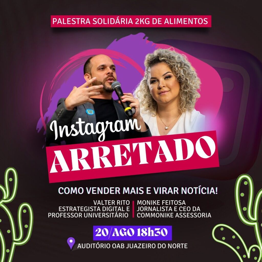 O auditório da OAB Juazeiro do Norte será palco da palestra solidária “Instagram Arretado: como vender mais e virar notícia”, no próximo dia 20 de agosto, às 18h30.