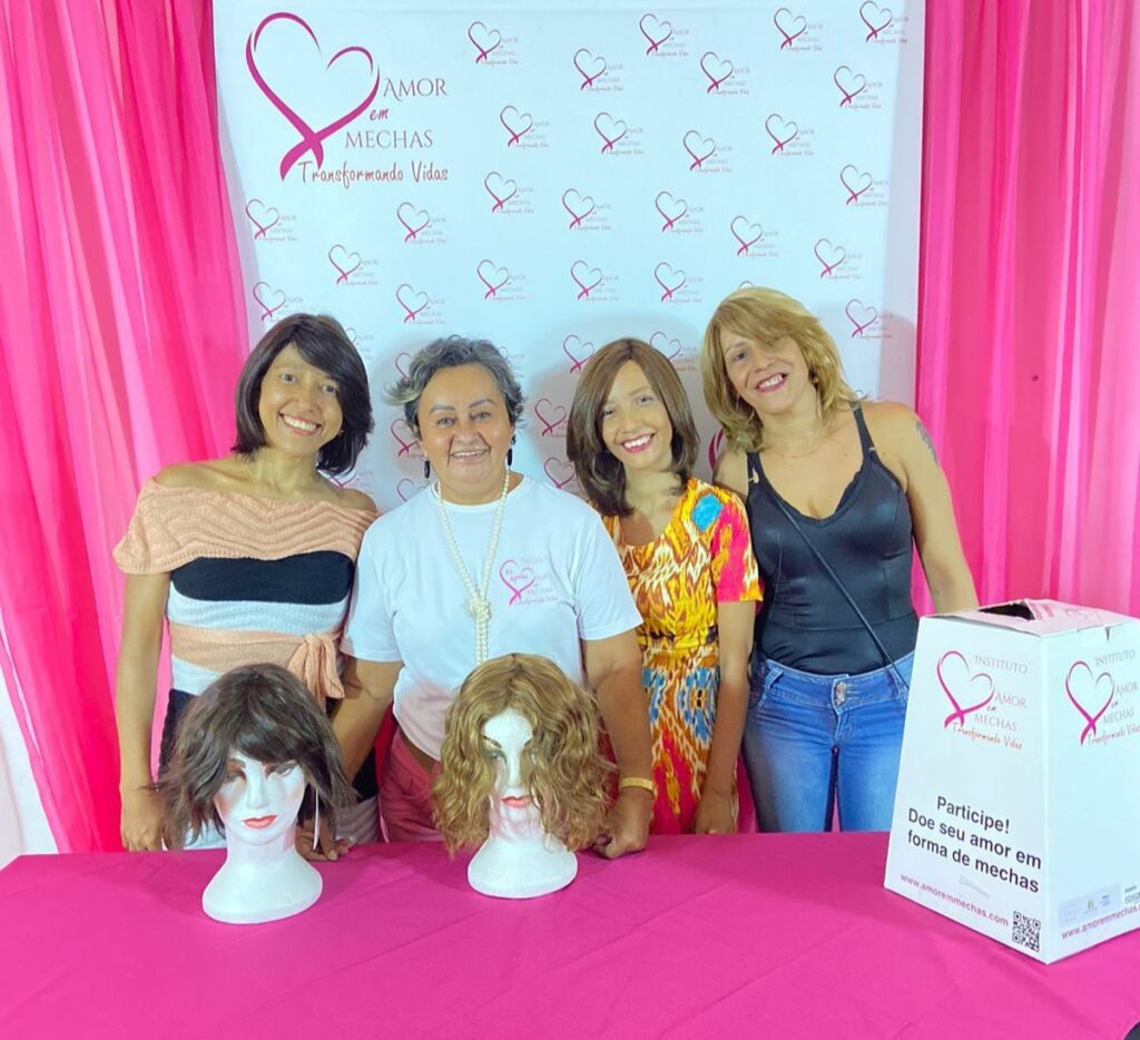 Além das entregas de perucas e Kits do Amor, o momento contou com uma ação de doação de mechas, atitude muito especial e significativa não só para a doadora como também para as mulheres que estavam vivenciando um momento muito importante de transformação e emoção.